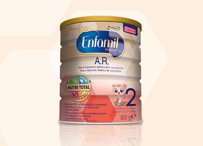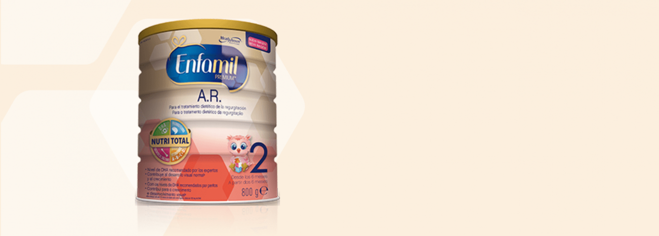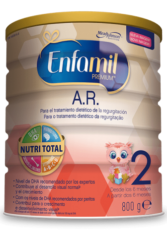Enfamil A.R. 2 pode ser utilizado por lactentes com mais de 6 meses que regurgitam frequentemente. É uma fórmula concebida com um espessante de amido de arroz. Torna-se líquida no biberão e espessa no estômago do bebé. Enfamil A.R. 2 tem uma consistência semelhante a fórmula para lactentes saudáveis, permitindo que ela flua normalmente através de uma tetina normal. Engrossa ligeiramente quando refrigerada, retomando a consistência normal quando aquecida.